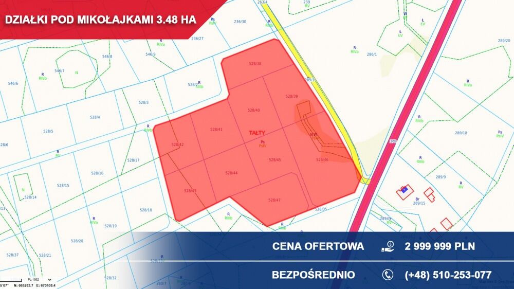 Numery działek: od 528/38 do 528/47, obręb Tałty.